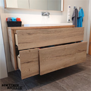 Waschtisch in markantem Eiche Dekor mit durchgehendem Holzbild über die gesamte Front.