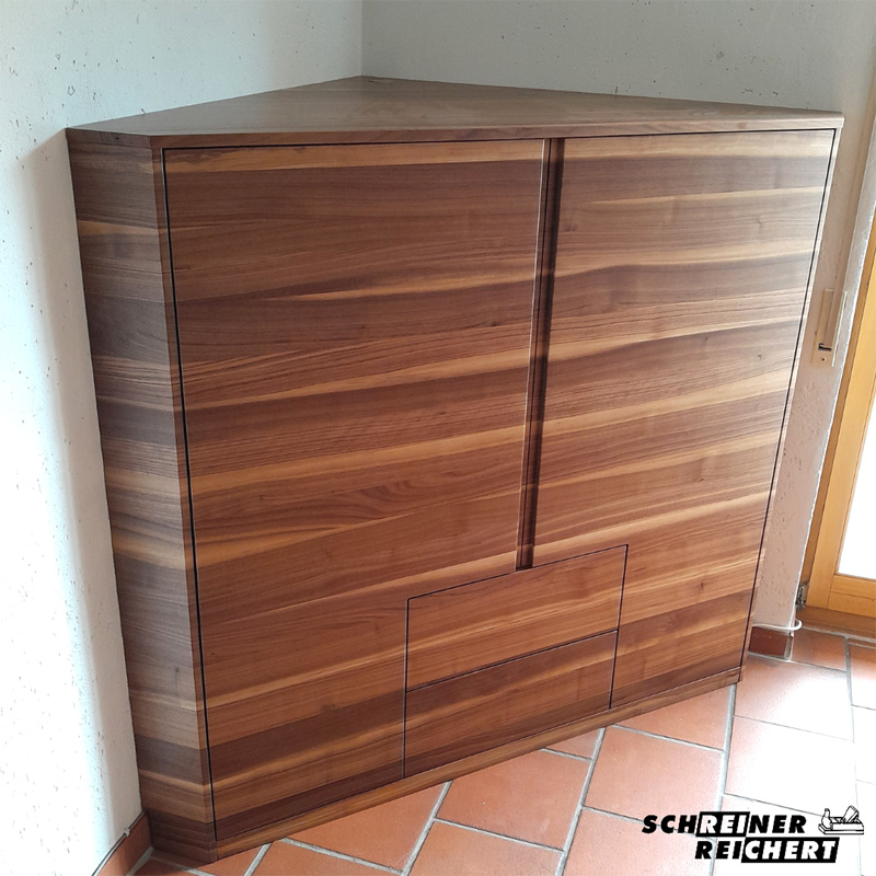 Eckschrank zur Aufnahme von TV und Zubehör.