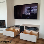 Im Zuge einer Kaminsanierung umgestalteter TV-Bereich.