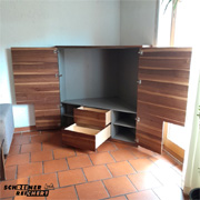 Eckschrank zur Aufnahme von TV und Zubehör.